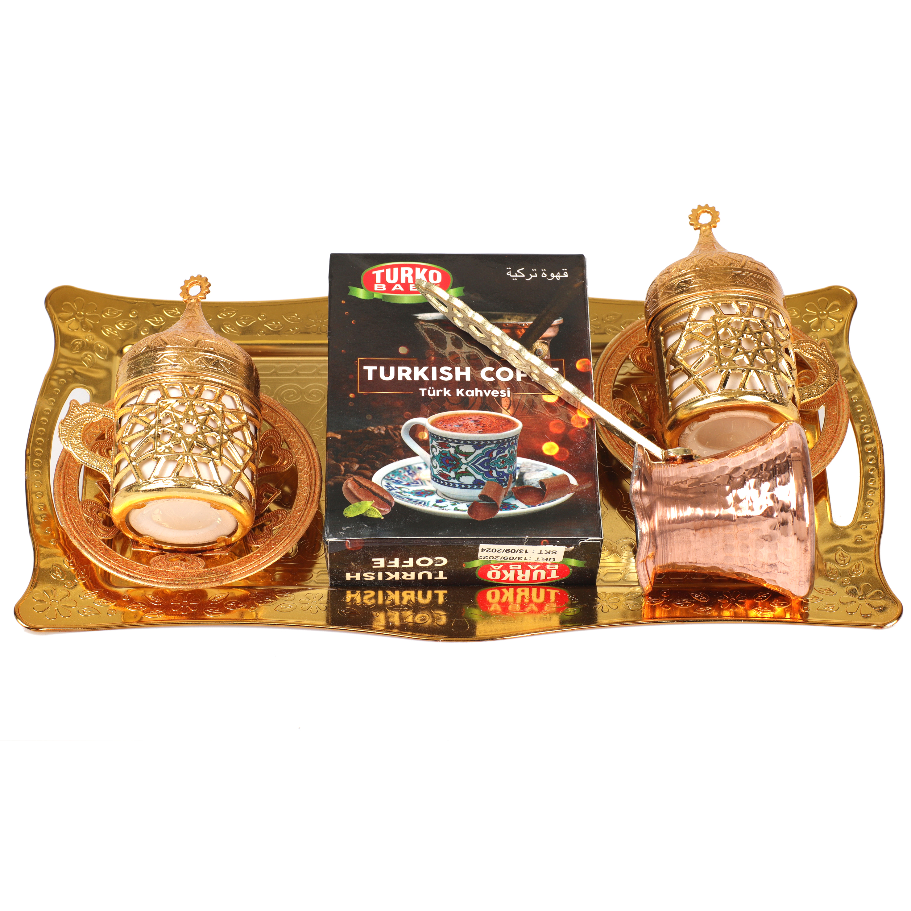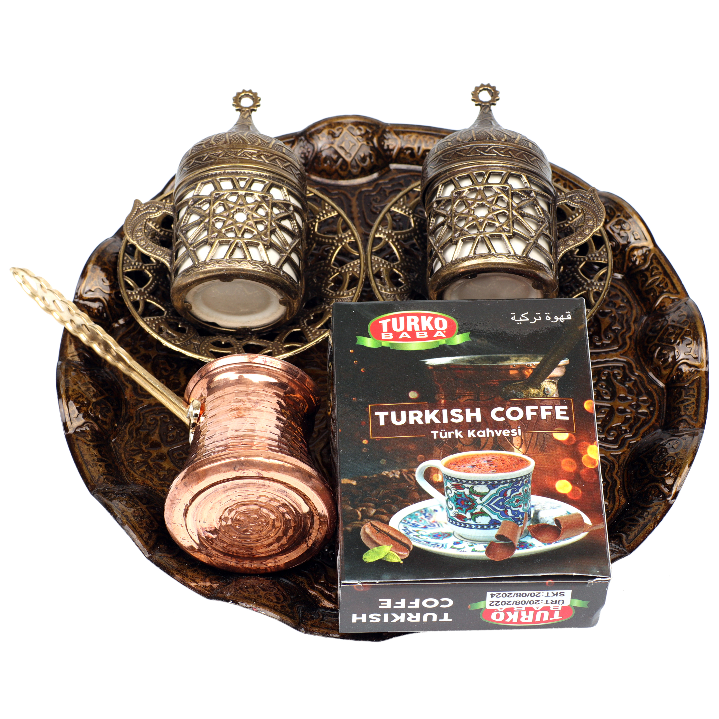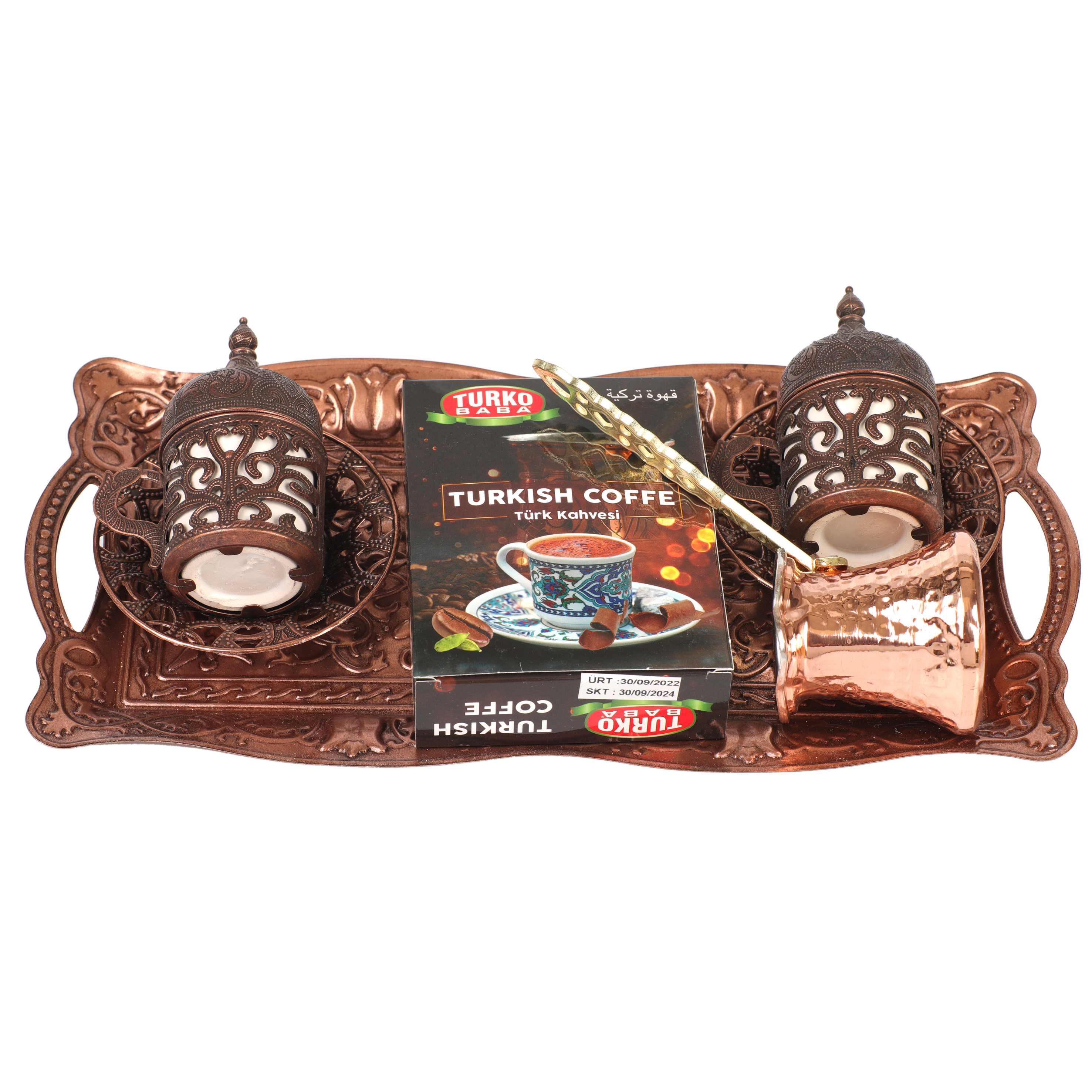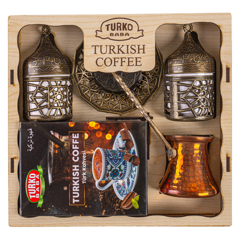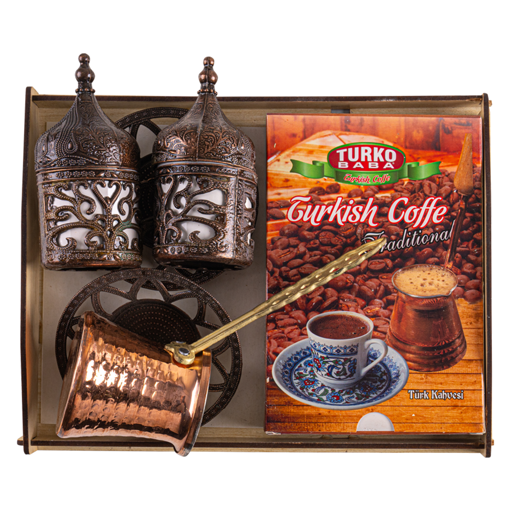 Lüx ahşap kahve seti bakır